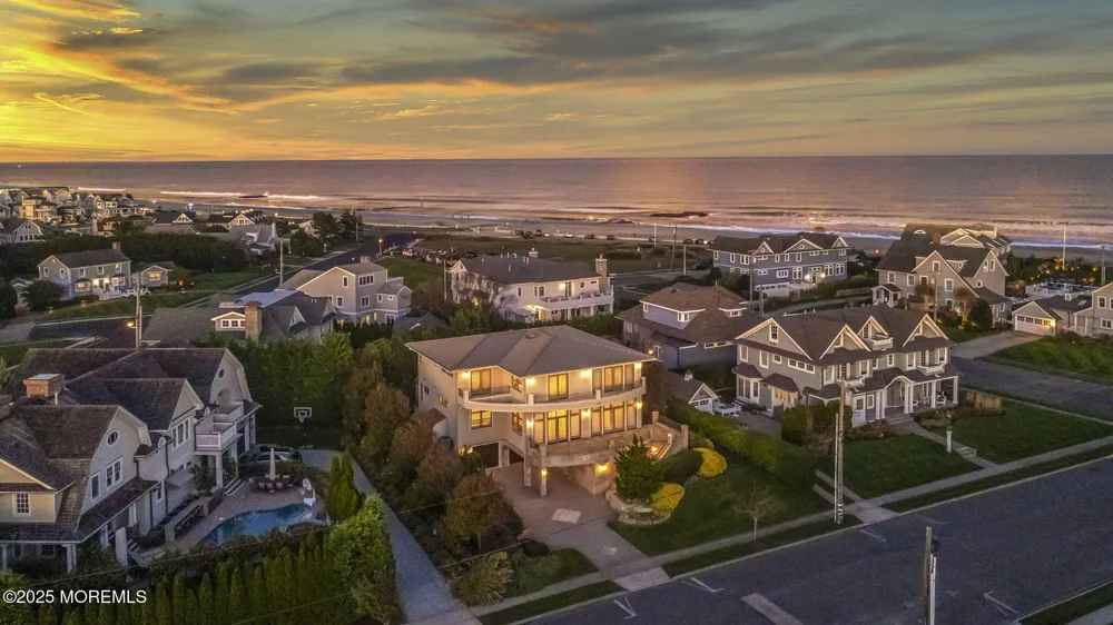 Experience the essence of Spring Lake living in the prestigious North End, just one block from the beach and Lake Como. This coastal masterpiece blends timeless architecture with modern luxury, showcasing a cedar shake and stone façade, metal roof, and Loewen windows. Inside, soaring 10-ft ceilings, radiant light, and a double-sided gas fireplace define the main level, leading to a chef's kitchen with Wolf range, Viking double ovens, wet bar, and custom cabinetry. The primary suite offers a spa-like bath, walk-in closet, and dual balconies with ocean and garden views. Enjoy an Ipe deck, stone patio, outdoor shower, radiant heat, and a two-car garage.