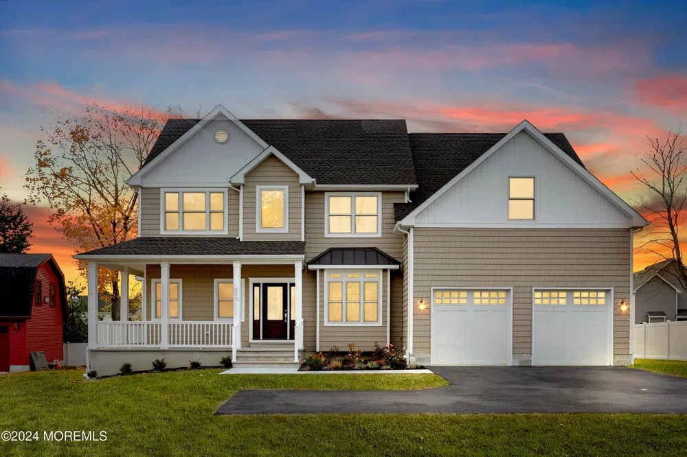 Experience the pinnacle of quality and style in this brand-new construction home, set on a spacious ½-acre lot in a sought-after location. Offering 5 bedrooms, 3 full baths, a 2-car garage, and a full basement with high ceilings and Superior Wall Systems, this home delivers modern luxury with enduring craftsmanship. The stunning exterior is a showcase of premium features, including a charming covered front porch, cedar impression siding, Andersen windows, Azek trim, board and batten gables, cultured stone accents, and standing seam roof highlights. Inside, the attention to detail continues with beautiful oak hardwood flooring throughout and a thoughtfully designed open floor plan that seamlessly blends the kitchen, dining, and family room. The main living area boasts 9-foot ceilings, intricate decorative trim, and a cozy gas fireplace with a custom shiplap feature wall. A gourmet kitchen serves as the heart of the home, featuring premium cabinetry, Quartz countertops, a stylish tile backsplash, an island, and stainless-steel appliances. The first floor also offers a formal living room, a full bath, a study (which could serve as a 6th bedroom), and a mudroom with a convenient pantry. Upstairs, the luxurious primary suite is a true retreat with a spacious walk-in closet and a private spa-like bath complete with a dual-sink Quartz vanity, a soaking tub, and a separate shower. Additional bedrooms provide ample space, while the well-appointed bathrooms ensure comfort for family and guests alike. Prime Location: Perfectly situated near the Manasquan River, you'll enjoy easy access to marinas, fine dining, parks, farm markets, and the picturesque 1.6-mile walking path around the Reservoir. This home is the ideal blend of craftsmanship, modern amenities, and an unbeatable locationperfect for creating lasting memories. Don't miss the opportunity to make this exceptional property your forever home!